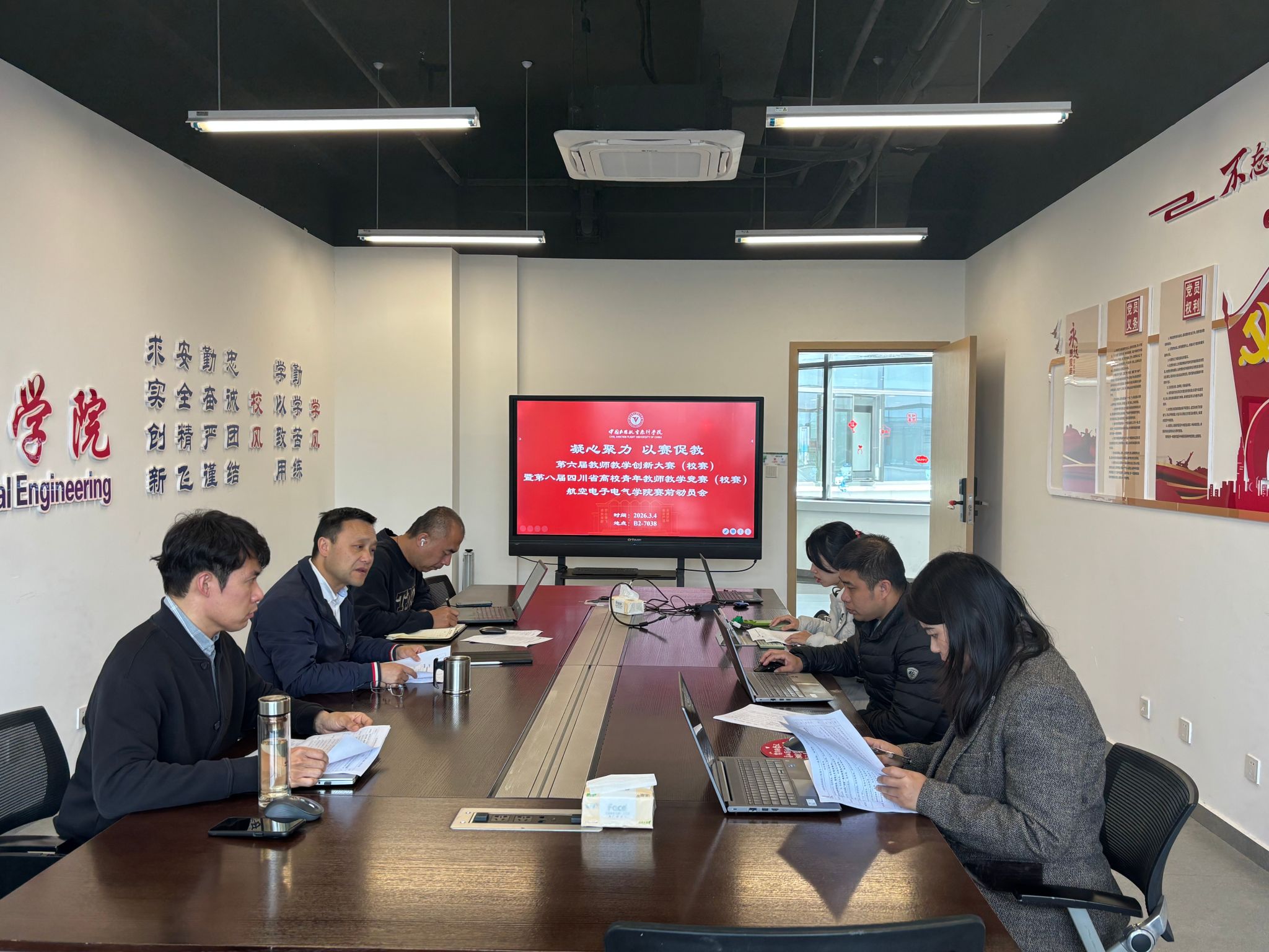本网讯 陈思忆 刘月 报道:2026年3月4日,航空电子电气学院在B2-7038会议室召开第六届教师教学创新大赛(校赛)暨第八届四川省高校青年教师教学竞赛(校赛)赛前动员会。学院院长魏麟、副院长刘希军出席会议,并对参赛教师开展赛前指导与交流。