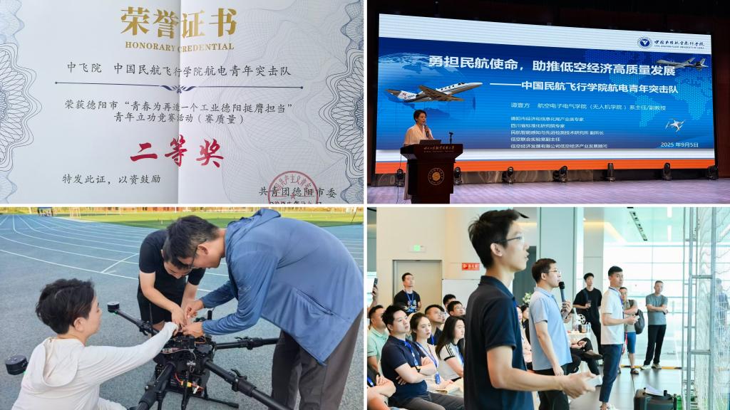 本网讯 马予晨 报道:在近日公布的德阳市“青春为再造一个工业德阳挺膺担当”青年立功竞赛结果中,航空电子电气学院“航电青年突击队”凭借出色表现,一举摘得二等奖殊荣。这份荣誉不仅是对团队深耕低空领域科研创新实力的高度认可,更彰显了学院青年教师团队服务地方产业发展的责任担当与专业素养。