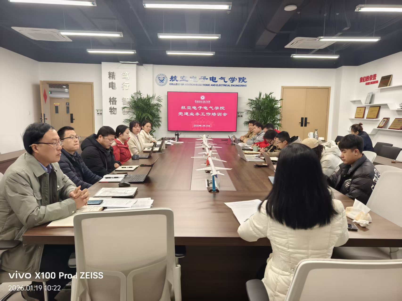本网讯 王雪香 报道: 2026年1月19日上午,航空电子电气学院党委召开党建业务专题培训会。会议聚焦党员发展、组织生活会等关键环节突出问题。学院党委刘银副书记、全体党支部书记及专兼职辅导员参加培训。会议由学院党委书记邓红缨同志主持。