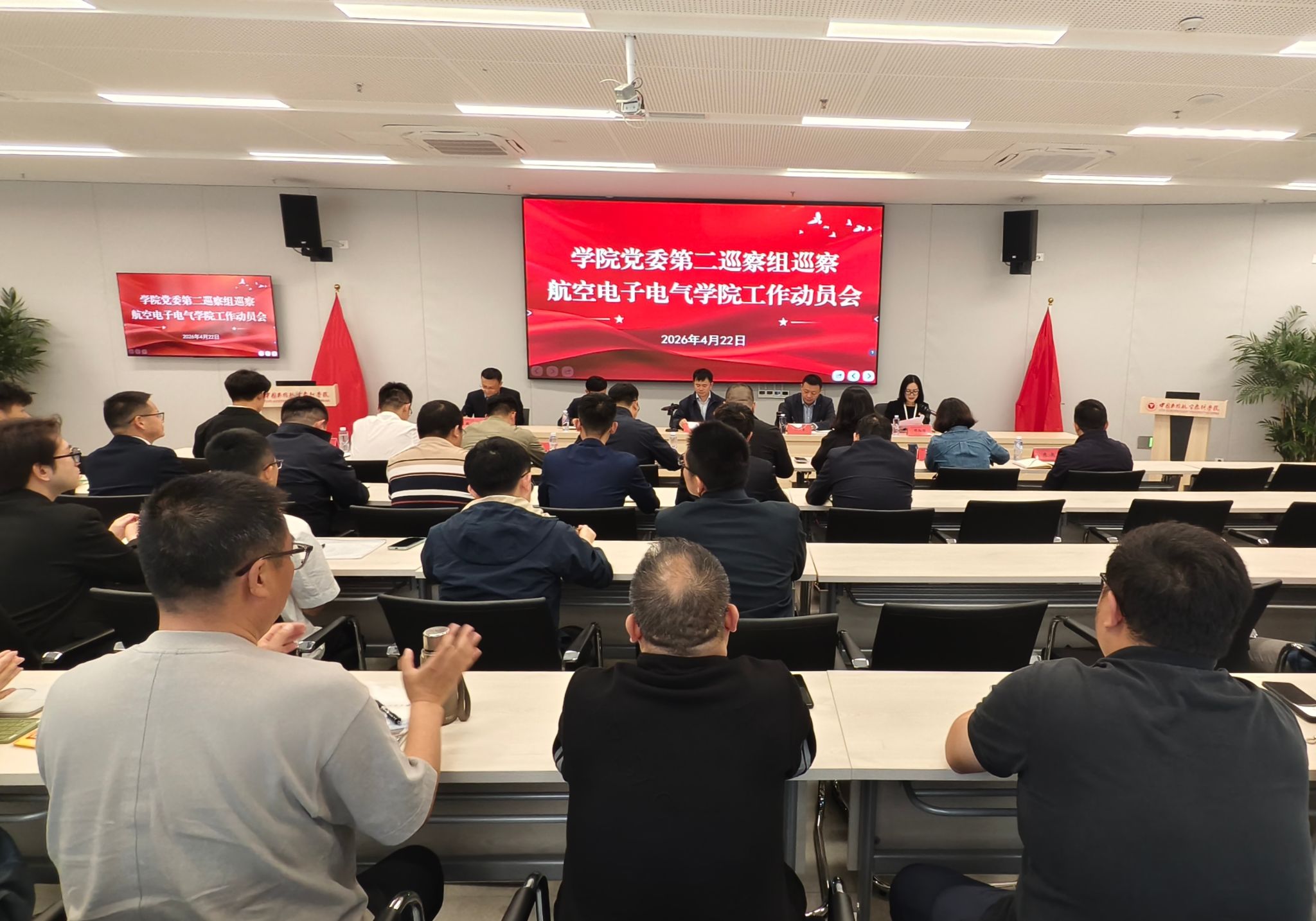 本网讯 马予晨 王雪香 报道:根据学校党委巡察工作的统一部署,2026年4月22日,学校党委第二巡察组巡察航空电子电气学院党委工作动员会召开。动员会上,孔鹏通报巡察任务和工作安排,邓红缨主持会议并作表态发言。
